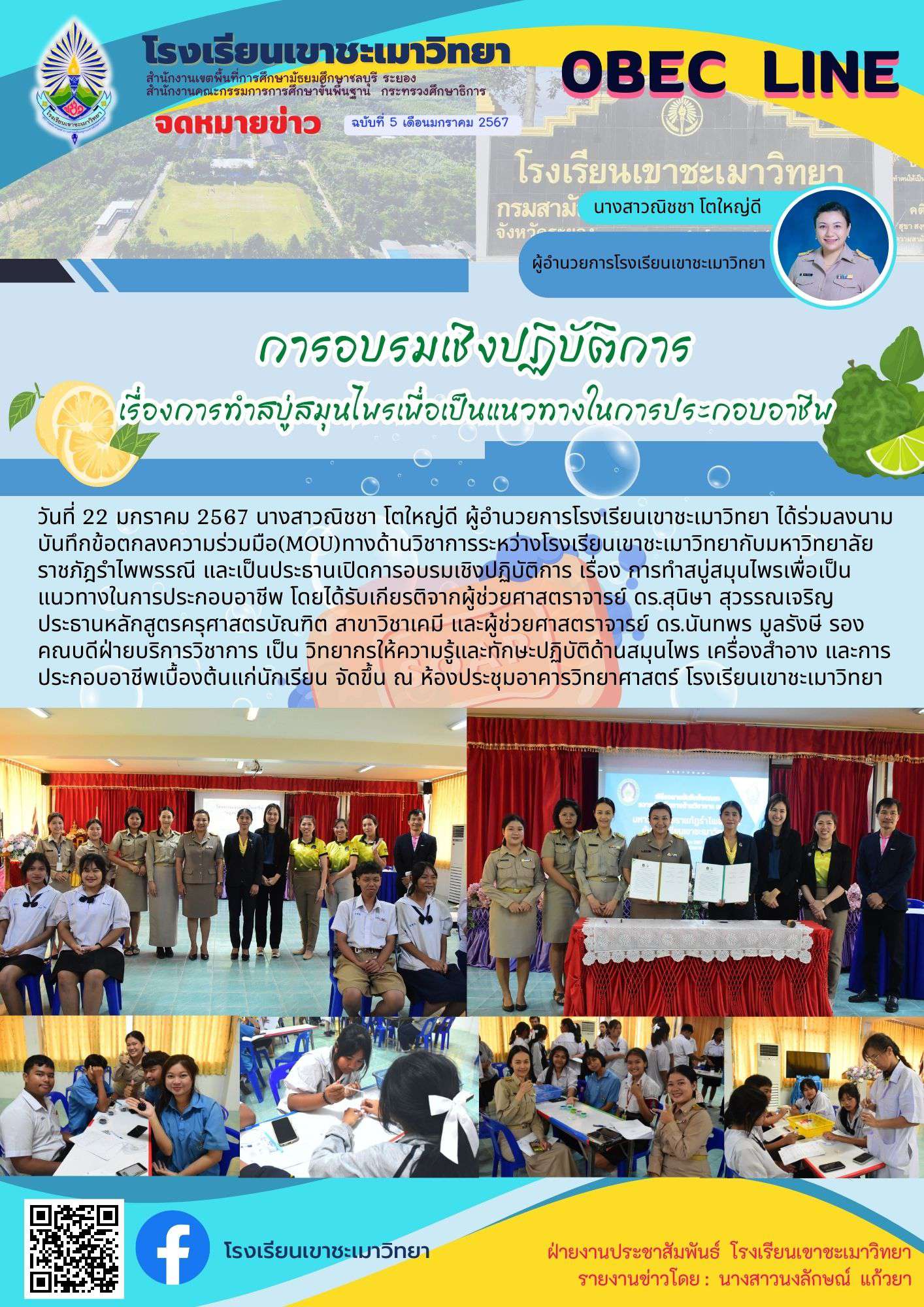 การอบรมเชิงปฏิบัติการ เรื่อง การทำสบู่สมุนไพรเพื่อเป็นแนวทางในการประกอบอาชีพ