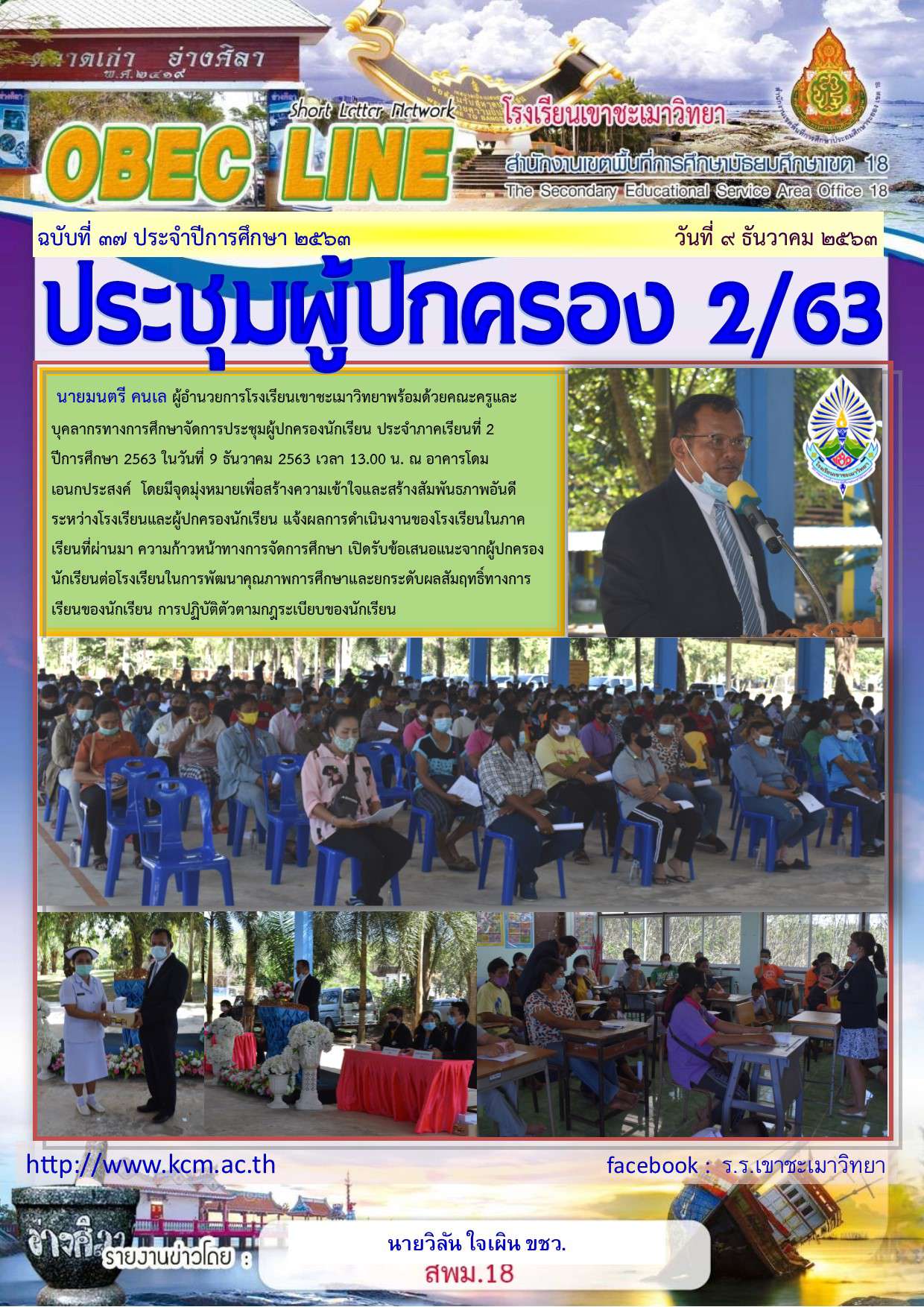นายมนตรี คนเล ผู้อำนวยการโรงเรียนเขาชะเมาวิทยาพร้อมด้วยคณะครูและบุคลากรทางการศึกษาจัดการประชุมผู้ปกครองนักเรียน ประจำภาคเรียนที่ 2      ปีการศึกษา 2563 ในวันที่ 9 ธันวาคม 2563 เวลา 13.00 น. ณ อาคารโดมเอนกประสงค์  โดยมีจุดมุ่งหมายเพื่อสร้างความเข้าใจและสร้างสัมพันธภาพอันดีระหว่างโรงเรียนและผู้ปกครองนักเรียน แจ้งผลการดำเนินงานของโรงเรียนในภาคเรียนที่ผ่านมา ความก้าวหน้าทางการจัดการศึกษา เปิดรับข้อเสนอแนะจากผู้ปกครองนักเรียนต่อโรงเรียนในการพัฒนาคุณภาพการศึกษาและยกระดับผลสัมฤทธิ์ทางการเรียนของนักเรียน การปฏิบัติตัวตามกฎระเบียบของนักเรียน